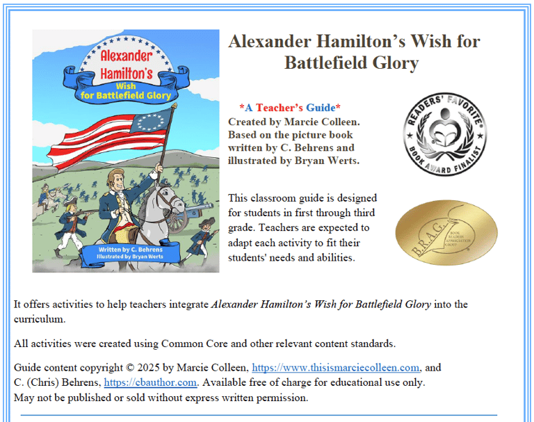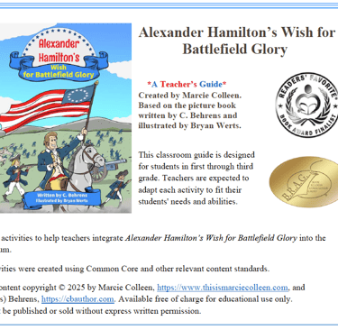 The pages are lively, with active depictions of battle. Illustrations are an appealing blend of cartoon simplicity and historical realism. The text features compact sentences, ideal for young readers...young readers with a bent for adventure or history will find the story exciting and Alexander Hamilton’s quest of success inspiring..." -BlueInk Review