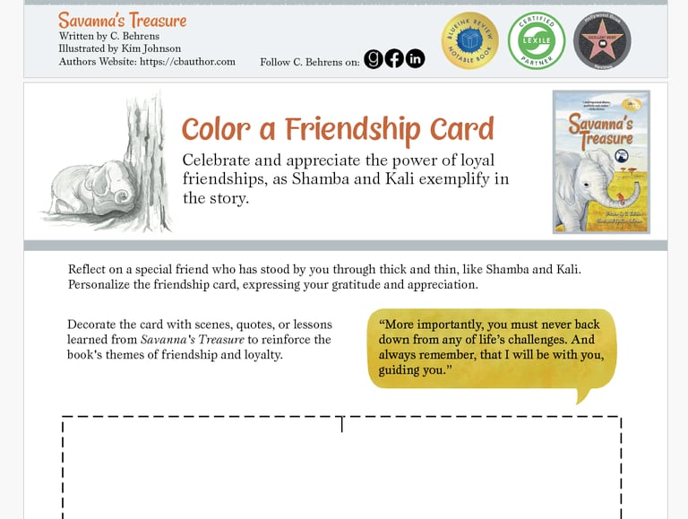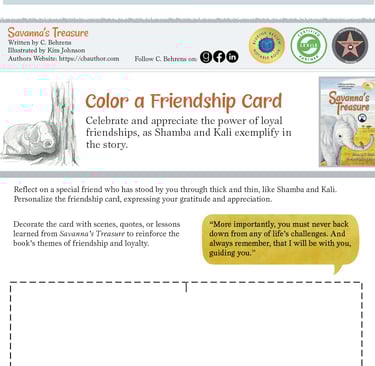 Set in the stunning landscape of the Serengeti, "Savanna's Treasure" follows the heartwarming journey of Shamba, an African field mouse, and Kali, a baby elephant, as they overcome incredible odds and forge an unbreakable bond. Their story, enriched by an inspiring animal alliance, earned the book a Silver Medal in the 2015 Moonbeam Awards for Chapter Books...Kirkus Reviews praised the book as "a good fit for early readers" and Midwest Book Reviews hailed it as "a fine read that takes an adventure story format and weaves it into something far greater."
